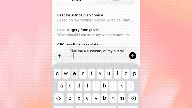 过去:你得先找到数据(体检报告、血糖曲线、用药记录),再自己拼起来问问题。 现在:你直接问“最近胆固醇趋势怎样”“明天复诊我该问什么”,系统再去调取并总结相关数据。 意义:把“信息检索成本”从用户端迁移到系统端,让健康管理更接近持续性的“日常工作流”。