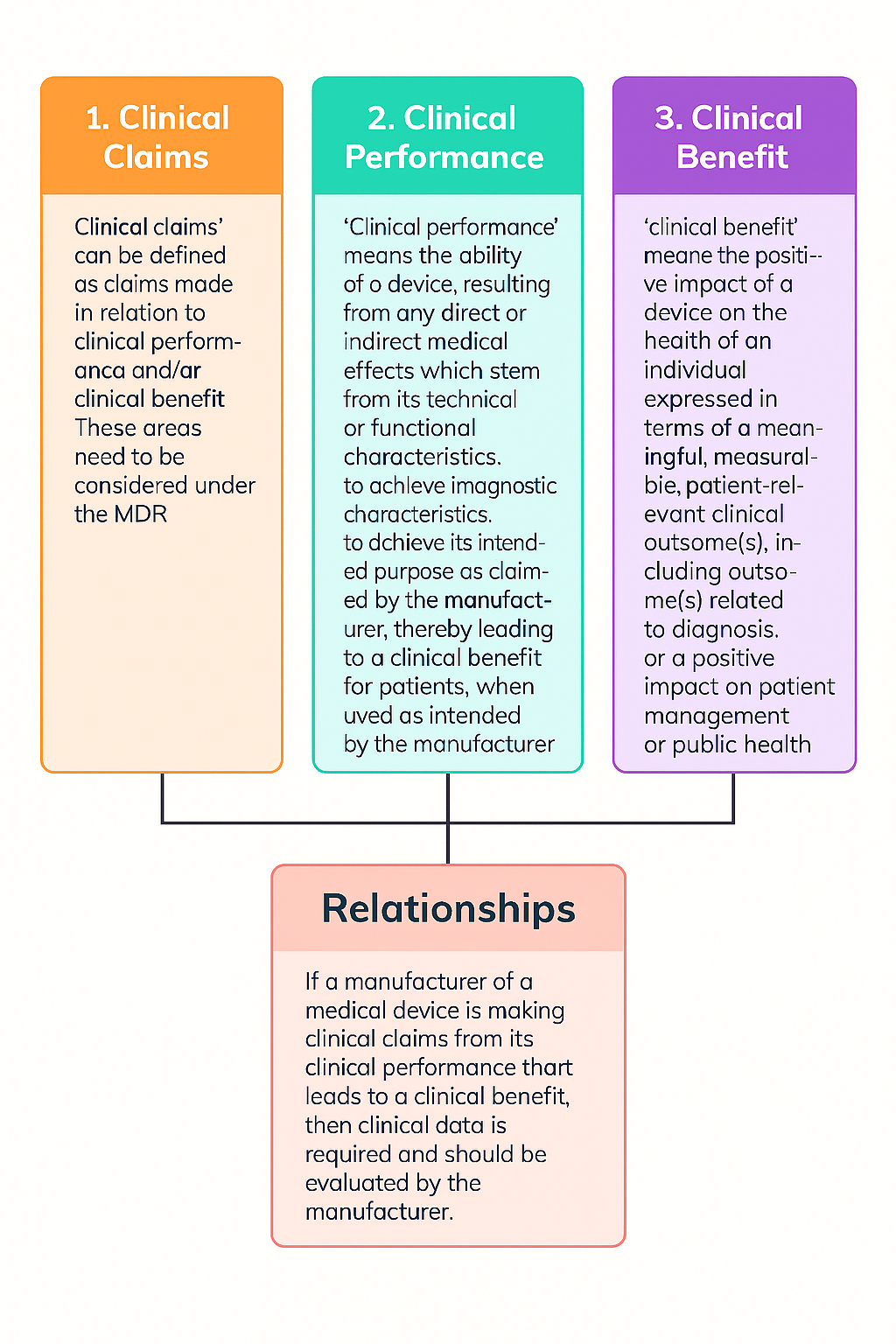 A. 我们先来举一个非常简单的例子,简单的手术刀,如果你的Clinical claim 是对组织进行切开/解剖以便于手术展开,那这样的claim 就是一个Non-clinical claim,也可以理解为performance claim,预期的宣称只是achieve intended function/capability/ability, 对患者的受益也是indirect clinical benefit,因为最终患者的手术的成功或者说是clinical outcomes 不会因为手术刀决定。