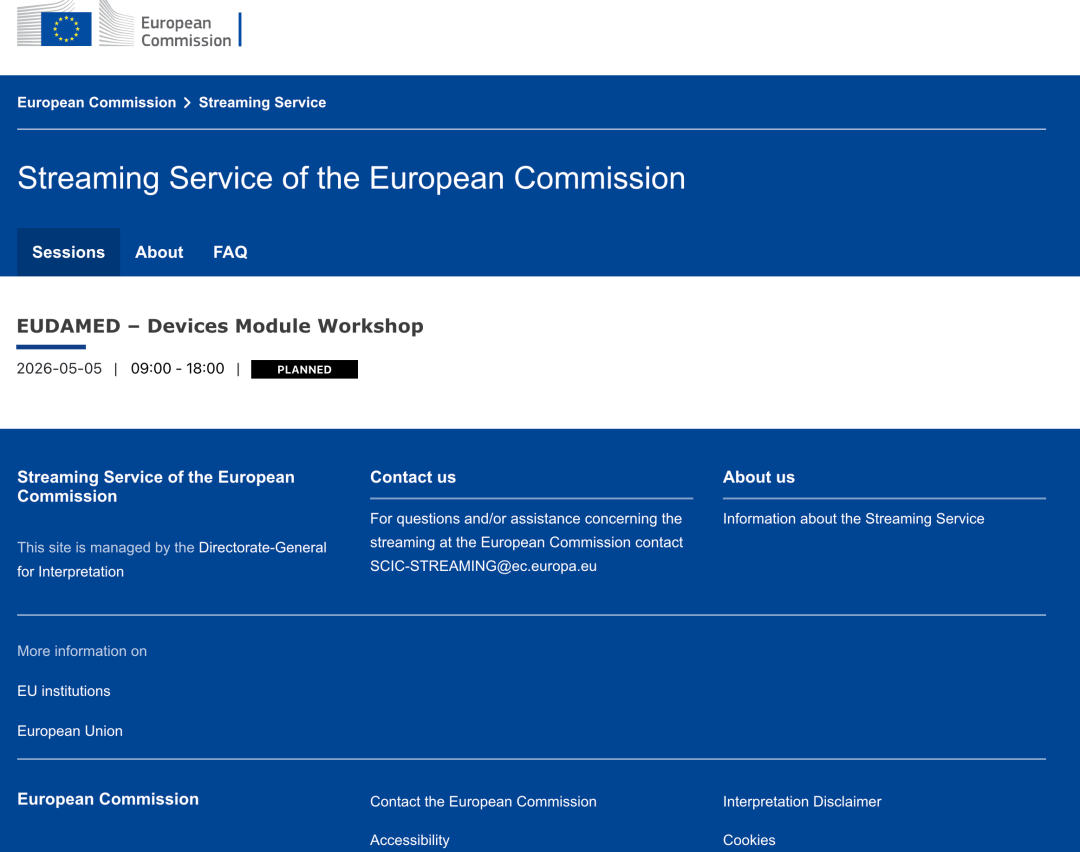 本次培训无需注册,完全免费,面向制造商、授权代表、公告机构、监管机构及所有关注EUDAMED的从业者。每场培训持续9个小时,包含演示和问答环节。请注意欧盟时间(CEST)与北京时间的差异,合理安排观看: